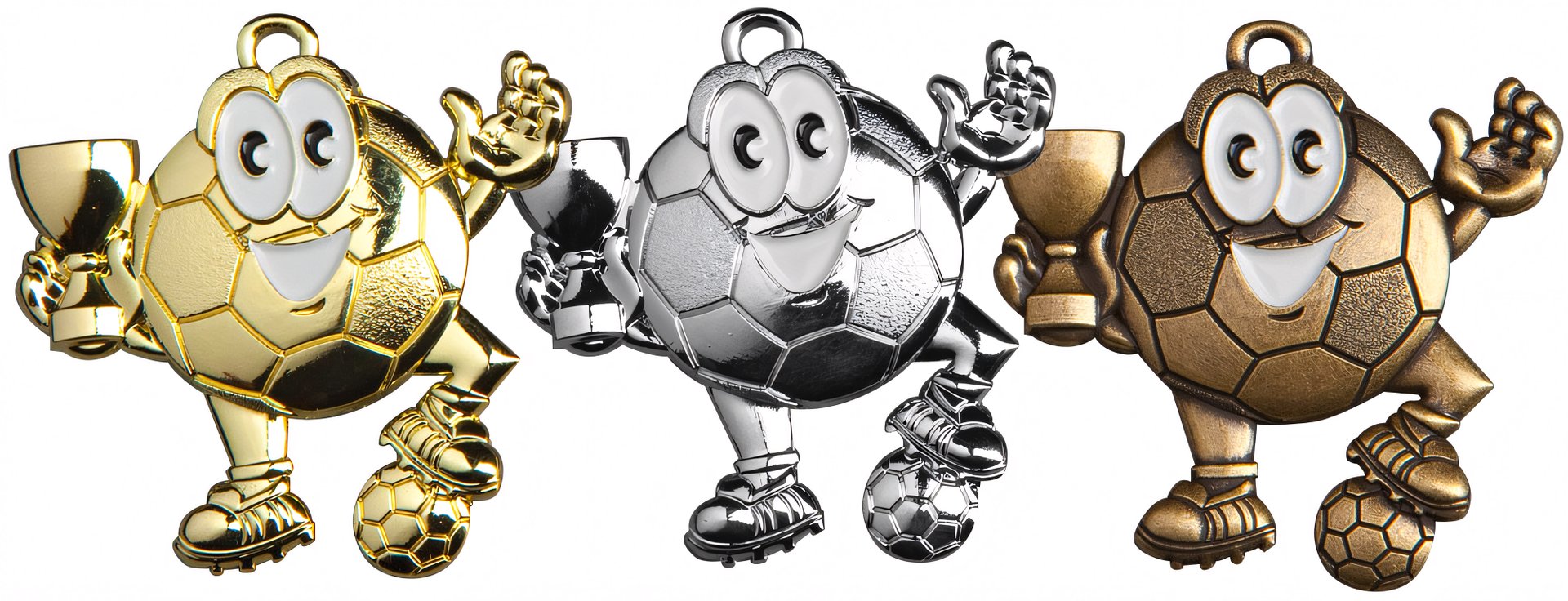 3er-Medaillenserie in Gold, Silber, Bronze mit einem Durchmesser von 4.7 cm. ist speziell für folgende Zielgruppe/Sportart: Fußball.