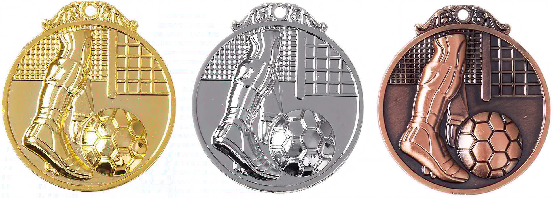 3er-Medaillenserie in Gold, Silber, Bronze mit einem Durchmesser von 4.5 cm. ist speziell für folgende Zielgruppe/Sportart: Fußball.