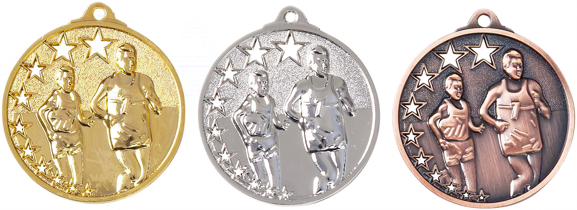 3er-Medaillenserie in Gold, Silber, Bronze mit einem Durchmesser von 4.5 cm. ist speziell für folgende Zielgruppe/Sportart: Leichtathletik.