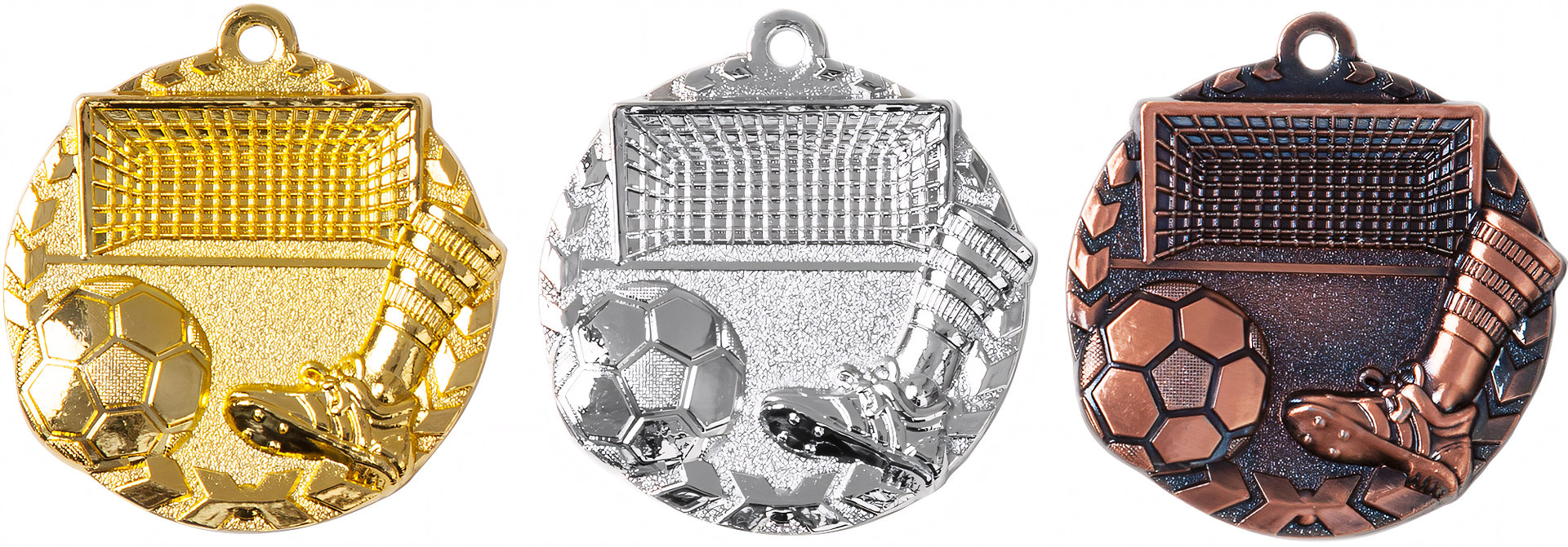 3er-Medaillenserie in Gold, Silber, Bronze mit einem Durchmesser von 4.7 cm. ist speziell für folgende Zielgruppe/Sportart: Fußball.