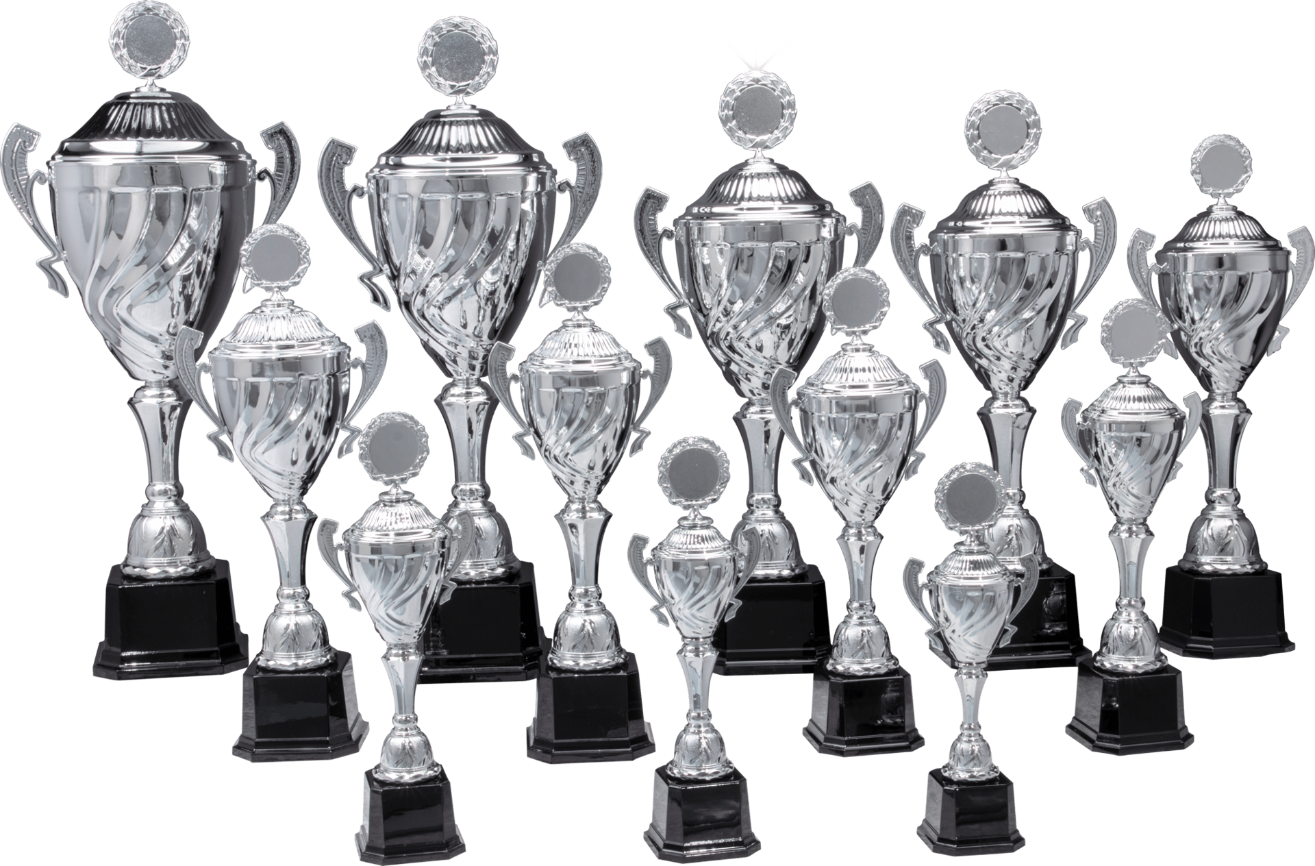 1Pokal in Silber von 36 cm – 72 cm Höhe in Premium Qualität. Individuelle Sockelbeschriftung auf Gravurplatte. Emblem in 50 mm Durchmesser wählbar aus über 300 Designs oder einem eigenen Emblem. Dieser Pokal ist universell für jede Zielgruppe/Sportart einsetzbar.
