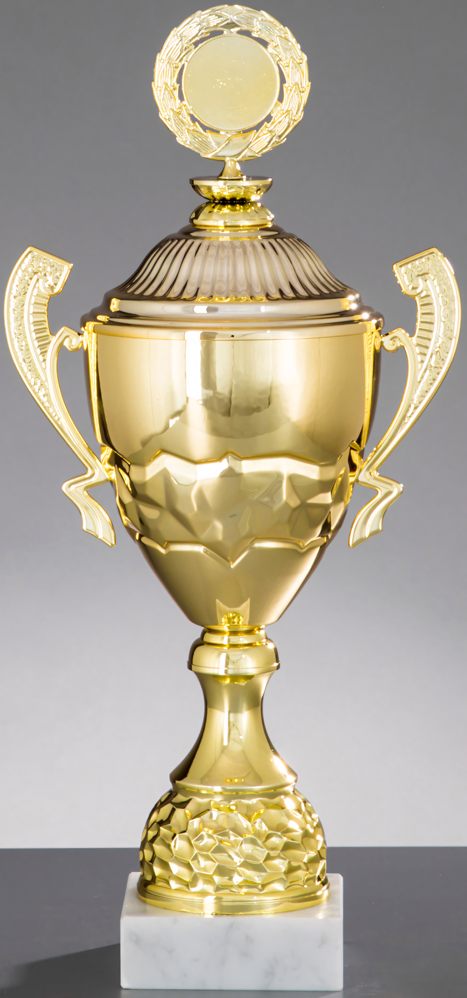 Pokal in Gold von 41,3 cm – 68 cm Höhe in Premium Qualität. Individuelle Sockelbeschriftung auf Gravurplatte. Emblem in 50 mm Durchmesser wählbar aus über 300 Designs oder einem eigenen Emblem. Dieser Pokal ist universell für jede Zielgruppe/Sportart einsetzbar. Als 8er-Serie erhältlich.