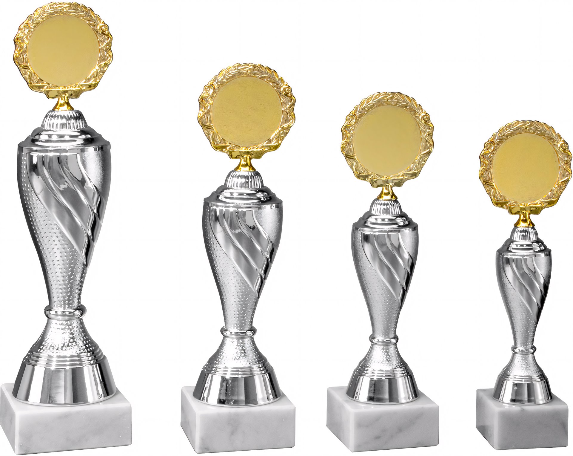 Pokal in Silber, Gold von 22,9 cm – 30,5 cm Höhe in Standard Qualität. Individuelle Sockelbeschriftung auf Gravurplatte. Emblem in 50 mm Durchmesser wählbar aus über 300 Designs oder einem eigenen Emblem. Dieser Pokal ist universell für jede Zielgruppe/Sportart einsetzbar. Als 4er-Serie erhältlich.