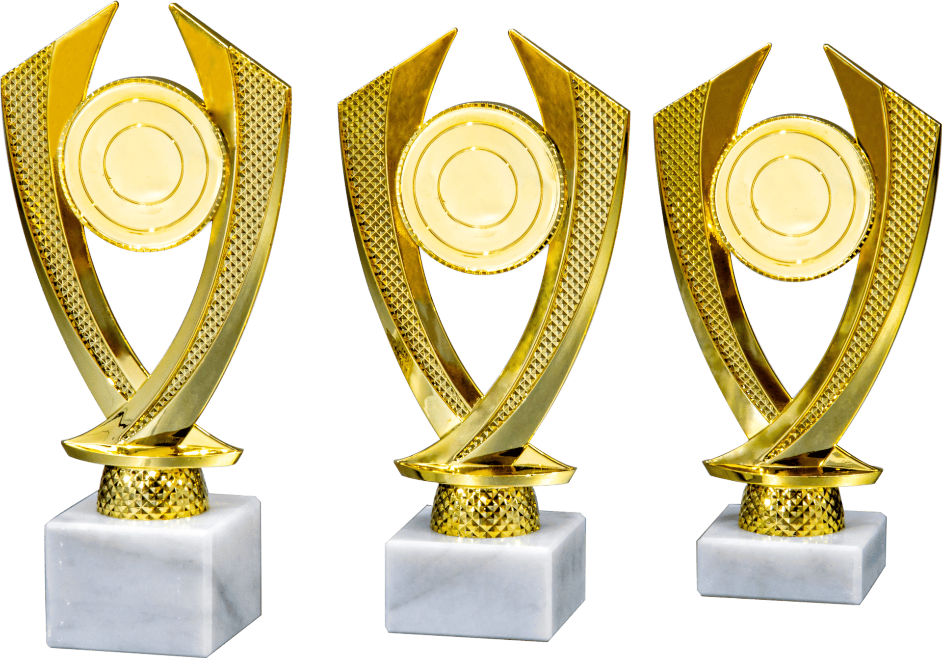 Pokal in Gold von 18 cm – 20 cm Höhe in Standard Qualität. Individuelle Sockelbeschriftung auf Gravurplatte. Emblem in 50 mm Durchmesser wählbar aus über 300 Designs oder einem eigenen Emblem. Dieser Pokal ist universell für jede Zielgruppe/Sportart einsetzbar. Als 3er-Serie erhältlich.