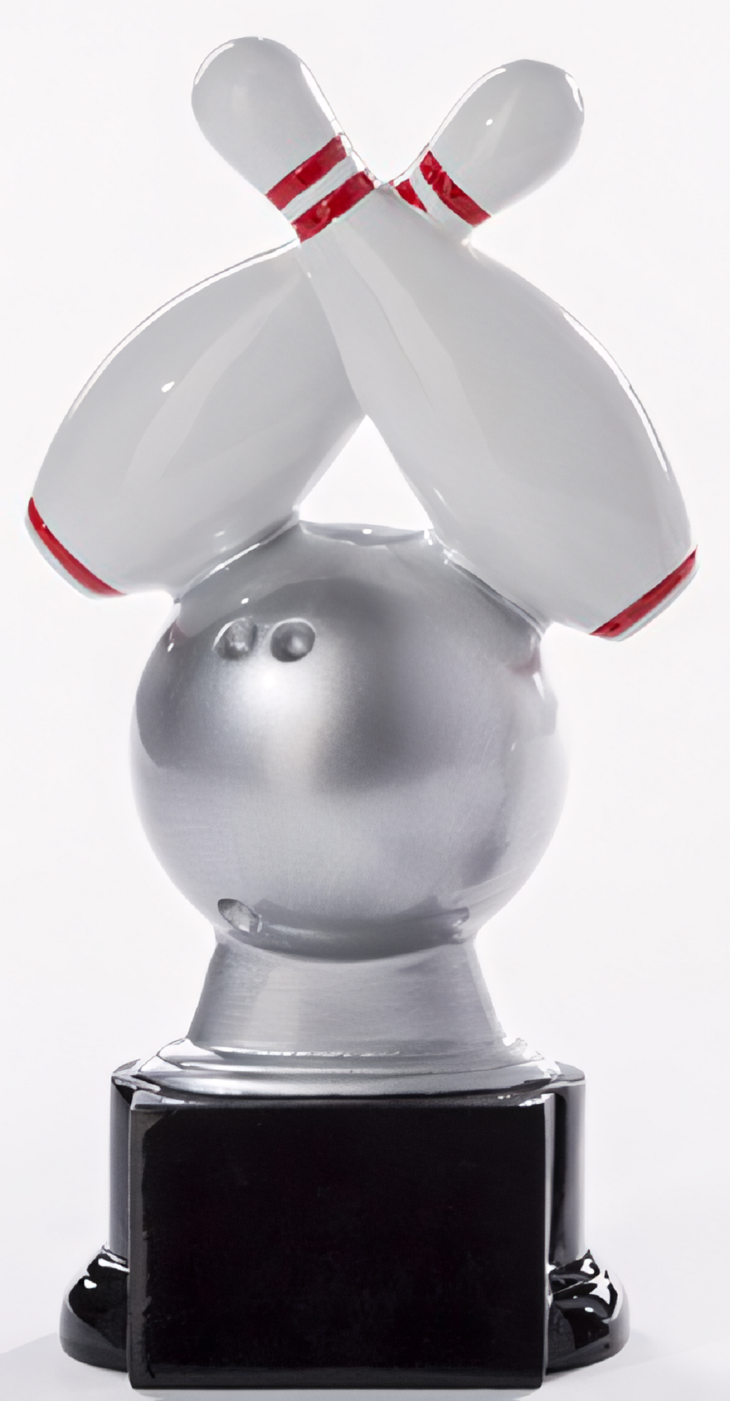 Trophäe in Weiß, Rot, Silber von 16 cm – 20 cm Höhe. Individuelle Sockelbeschriftung auf Gravurplatte. Diese Trophäe ist speziell für folgende Zielgruppen/Sportarten: Kegeln, Kegeln. Als 3er-Serie erhältlich.