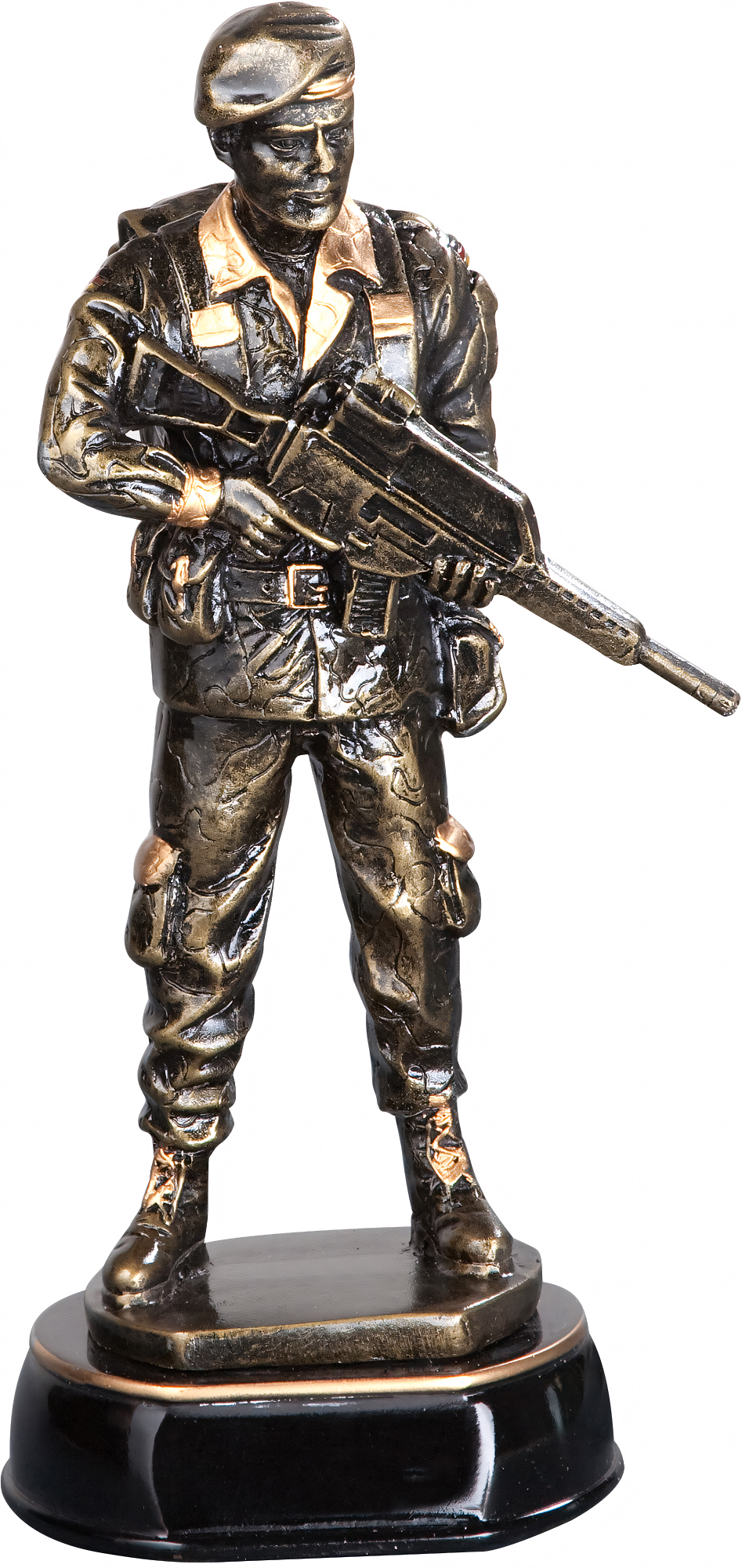Trophäe in Bronze mit einer Höhe von 25 cm. Individuelle Sockelbeschriftung auf Gravurplatte. Diese Trophäe ist speziell für folgende Zielgruppe/Sportart: Militär.