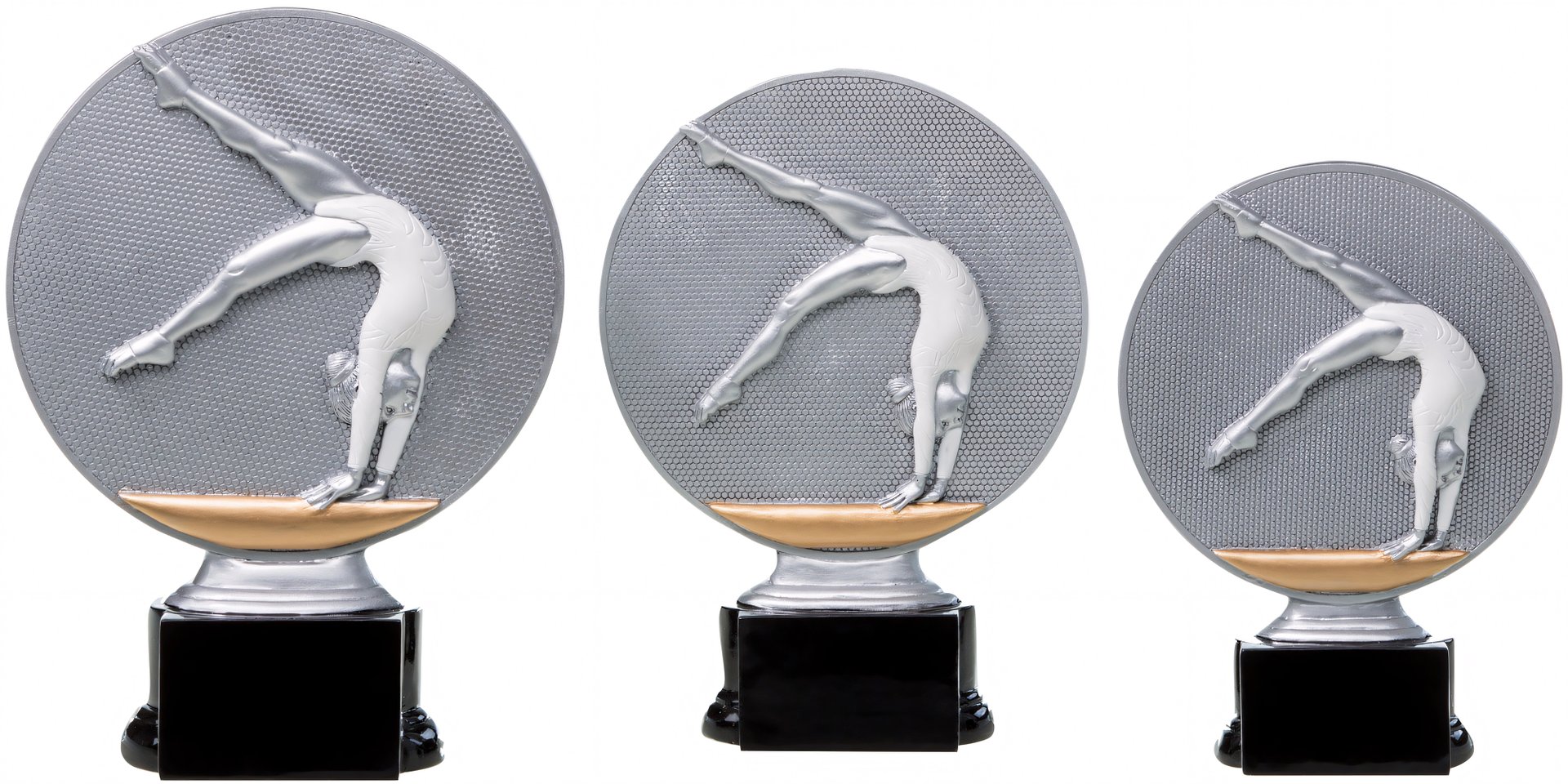 Trophäe in Weiß, Silber, Gold von 16 cm – 20 cm Höhe. Individuelle Sockelbeschriftung auf Gravurplatte. Diese Trophäe ist speziell für folgende Zielgruppen/Sportarten: Turnen, Turnen. Als 3er-Serie erhältlich.