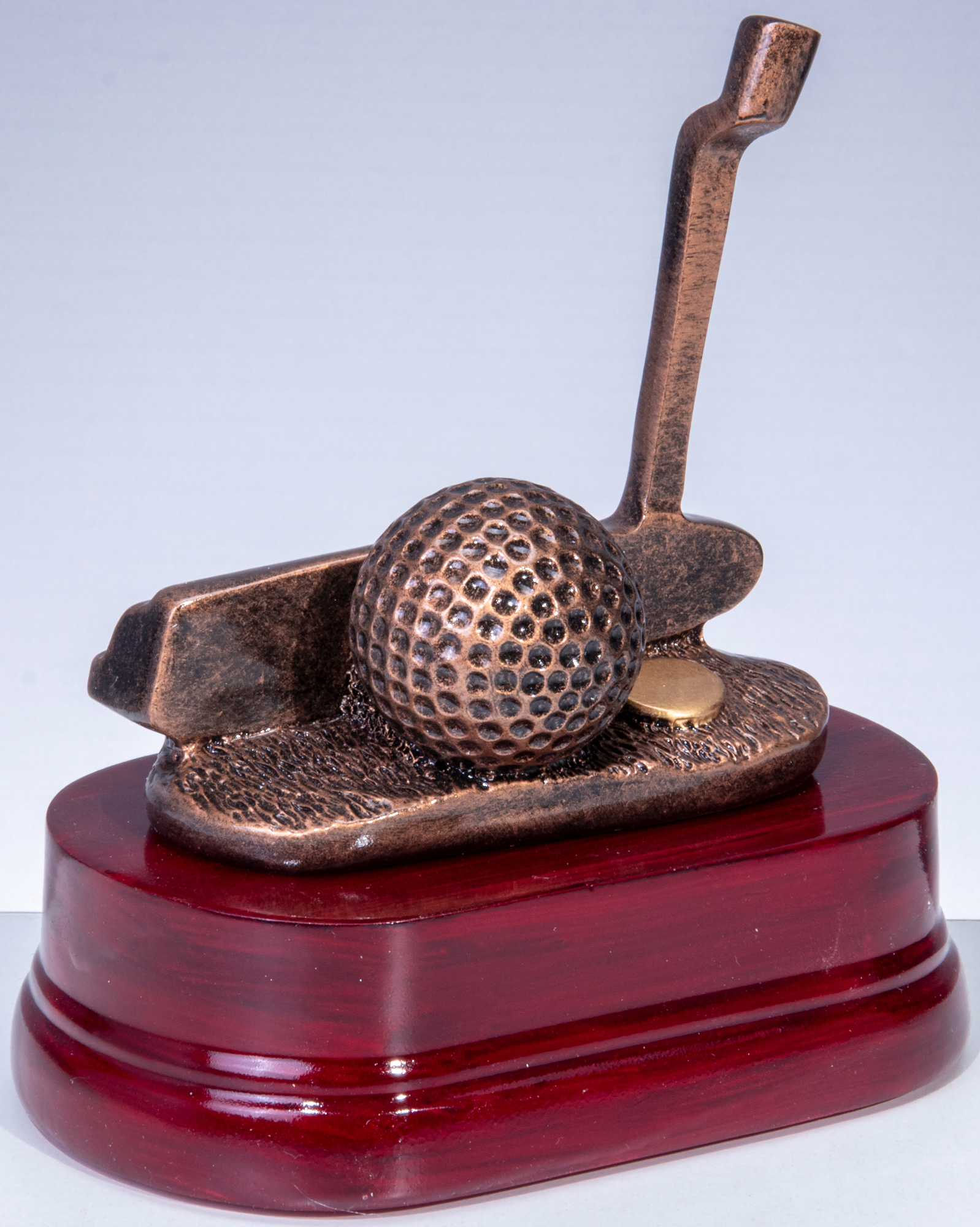 Trophäe in Bronze mit einer Höhe von 13 cm. Individuelle Sockelbeschriftung auf Gravurplatte. Diese Trophäe ist speziell für folgende Zielgruppe/Sportart: Golf.
