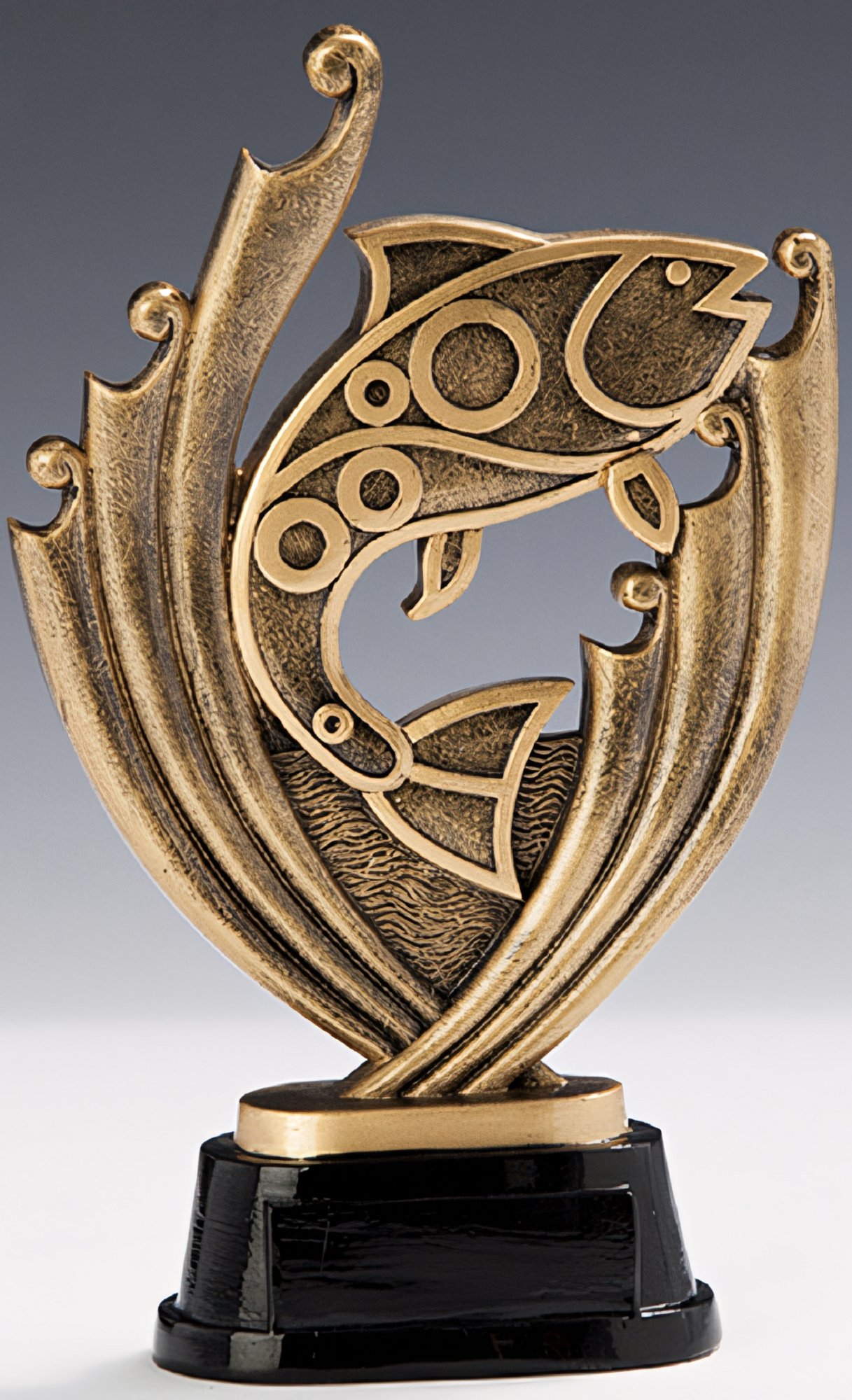 Trophäe in Gold mit einer Höhe von 22,4 cm. Individuelle Sockelbeschriftung auf Gravurplatte. Diese Trophäe ist speziell für folgende Zielgruppe/Sportart: Angeln.