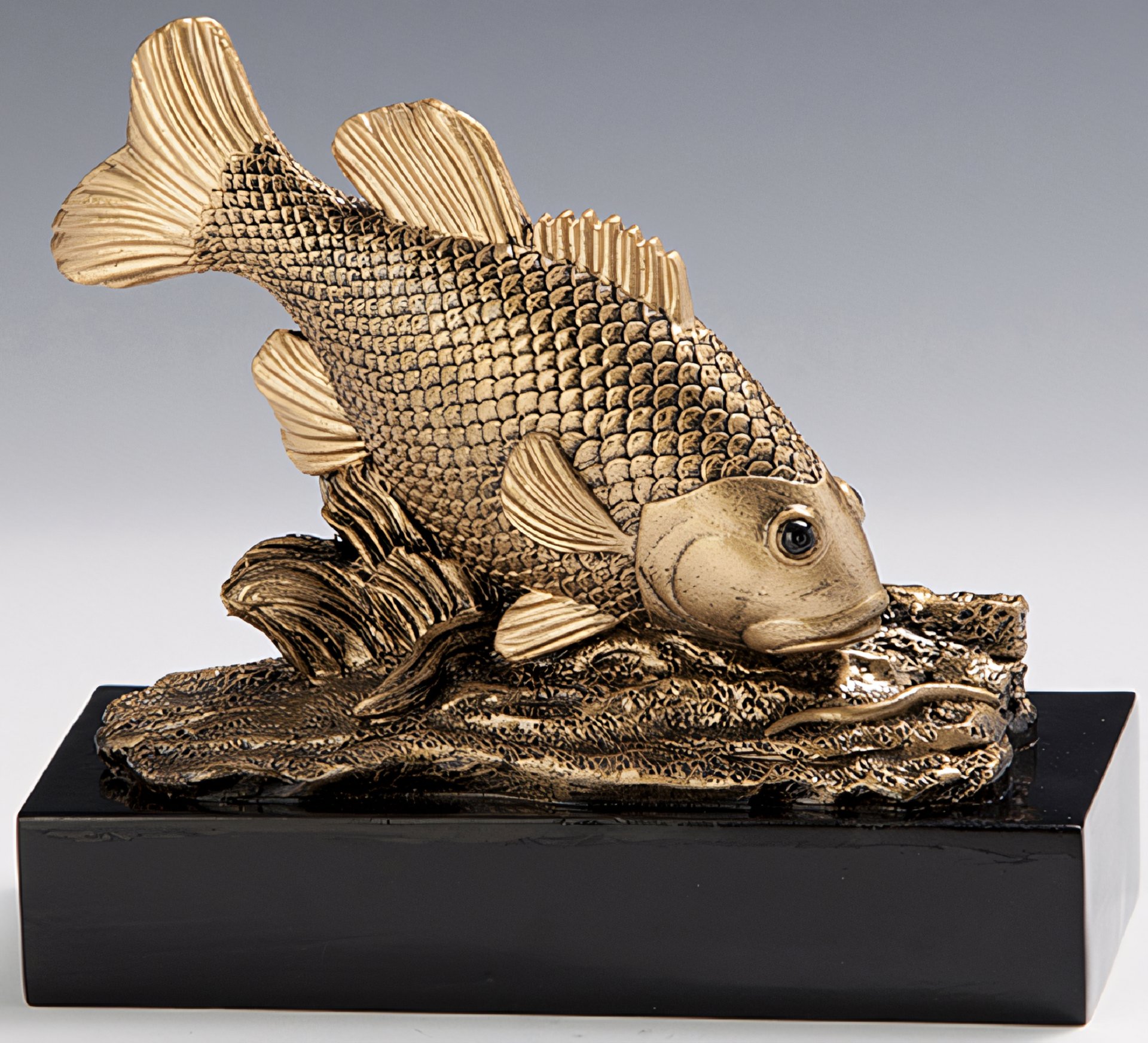 Trophäe in Gold mit einer Höhe von 14 cm. Individuelle Sockelbeschriftung auf Gravurplatte. Diese Trophäe ist speziell für folgende Zielgruppe/Sportart: Angeln.