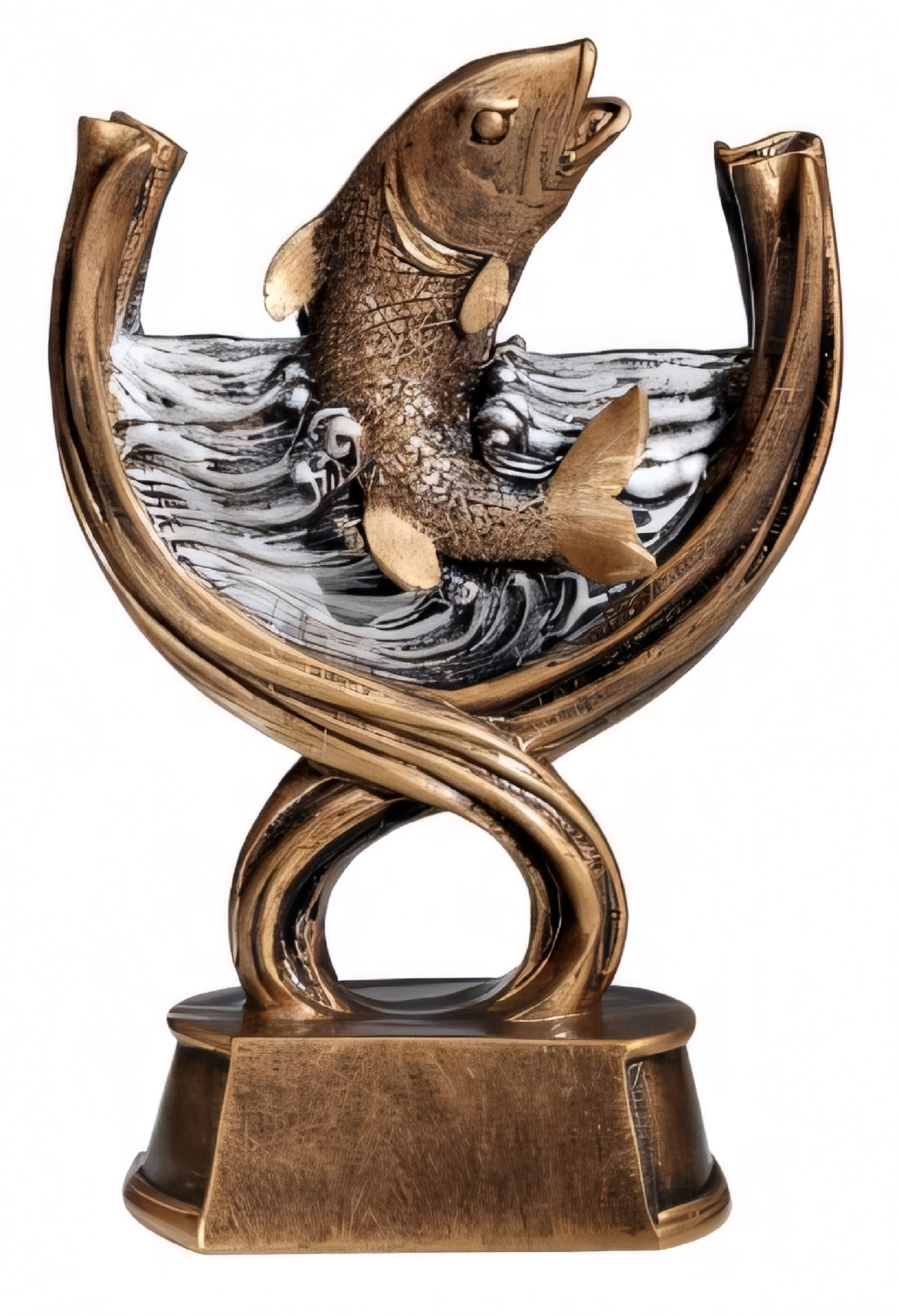 Trophäe in Bronze mit einer Höhe von 16,8 cm. Individuelle Sockelbeschriftung auf Gravurplatte. Diese Trophäe ist speziell für folgende Zielgruppe/Sportart: Angeln.