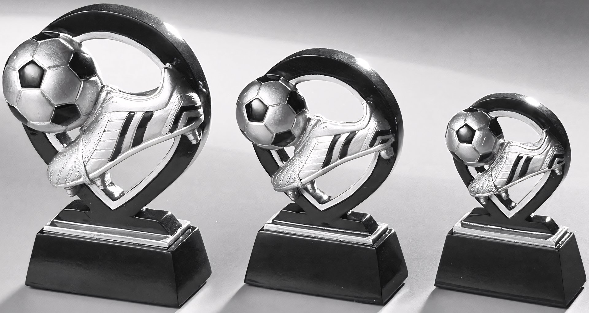 Trophäe in Schwarz, Silber von 10,8 cm – 8,8 cm Höhe. Individuelle Sockelbeschriftung auf Gravurplatte. Diese Trophäe ist speziell für folgende Zielgruppe/Sportart: Fußball. Als 3er-Serie erhältlich.
