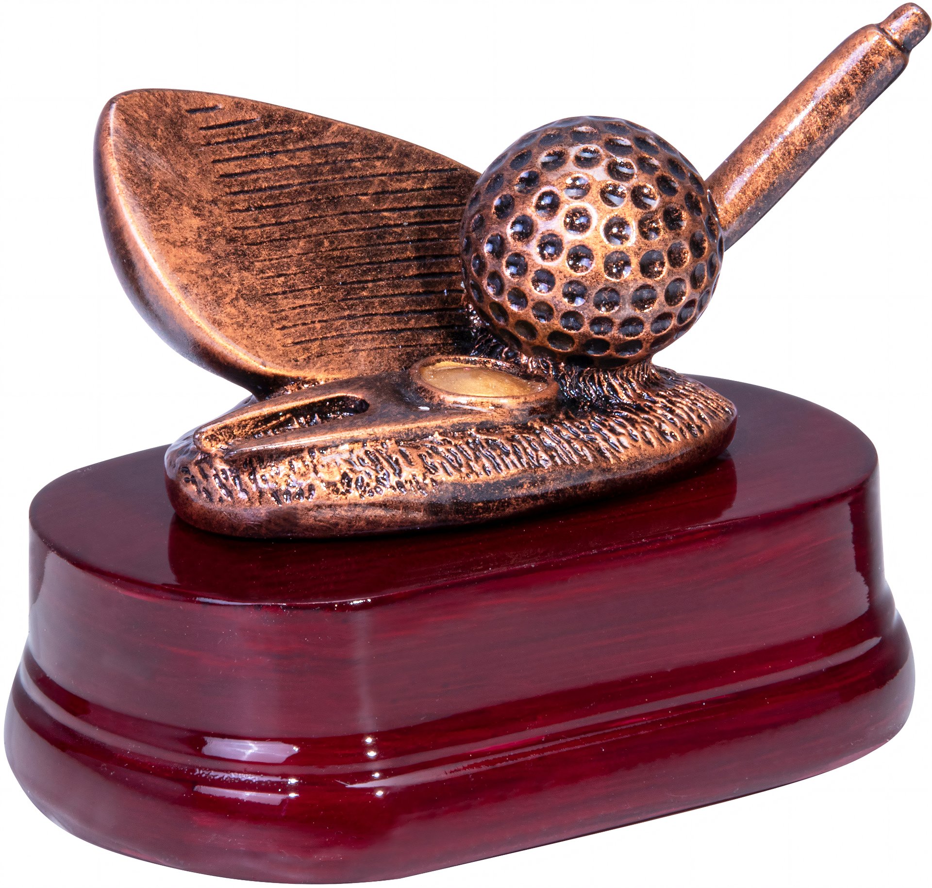 Trophäe in Bronze mit einer Höhe von 10 cm. Individuelle Sockelbeschriftung auf Gravurplatte. Diese Trophäe ist speziell für folgende Zielgruppe/Sportart: Golf.